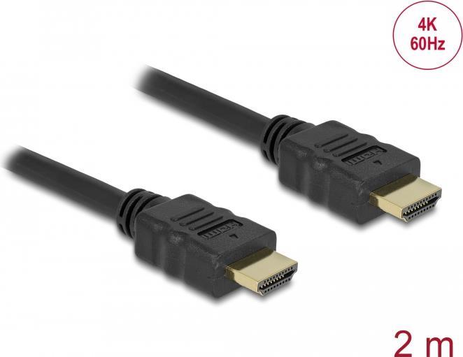 Delock - HDMI-Kabel mit Ethernet - HDMI männlich zu HDMI männlich - 2,0m - dreifach abgeschirmtes Twisted-Pair-Kabel - Schwarz - 4K Unterstützung (84714)