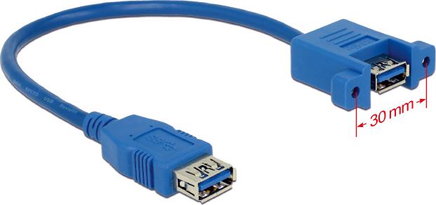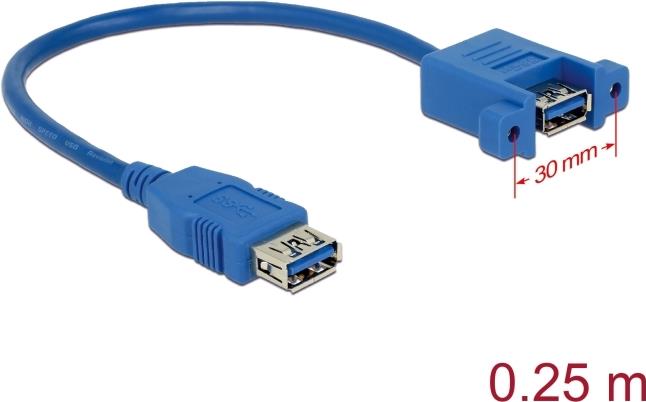 DeLOCK - USB-Adapter - 9-polig USB Typ A (W) - 9-polig USB Typ A (W) - 25cm (USB3.0) - Blau (85111)