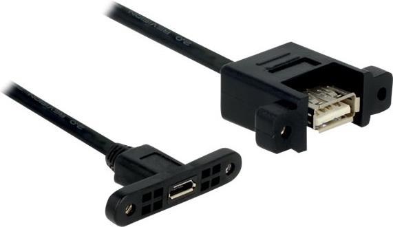 Dieses Kabel dient zur Verlängerung einer USB 3.0 Verbindung und kann zum Anschluss diverser Geräte verwendet werden. Die Buchse lässt sich mit zwei Schrauben befestigen, z. B. an einem Slotblech, einem Kabelkanal oder einem Gehäuse mit der entsprechenden Aussparung. Dies kann dazu genutzt werden, eine USB Buchse an einer leicht erreichbaren Position zu installieren.