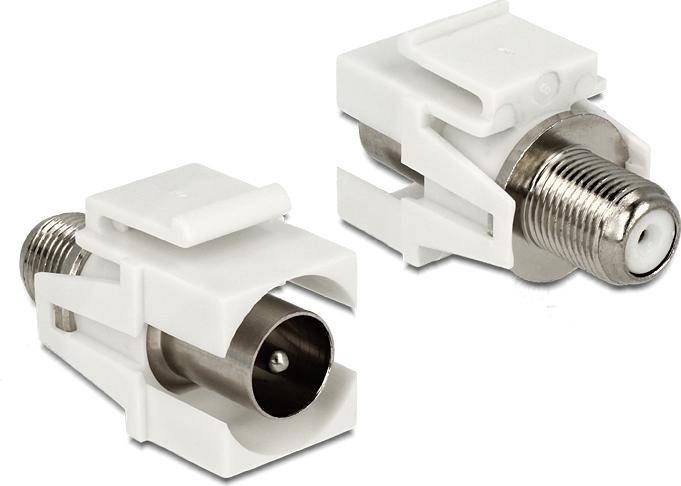 Dieses Modul von Delock können Sie zum Verbinden von Antennenkabeln mit einem F-Stecker und einem IEC-Stecker (Koax) verwenden. Durch die standardisierten Abmessungen ist es zur einfachen Snap-In Montage in verschiedenen Halterungen, wie z. B. Keystone Patchpanel, Dosen oder Gehäuse geeignet.