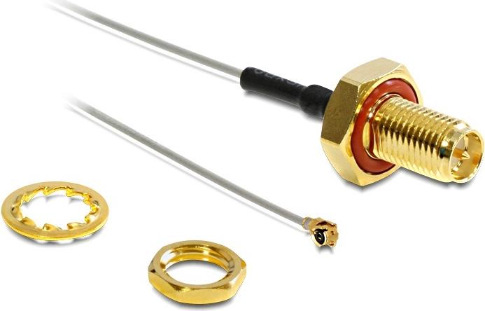 DeLOCK HF Antenna Connection for Installation - Antennenadapter - I-PEX (M) - RP-SMA (W) - 10cm - Grau (88458)
