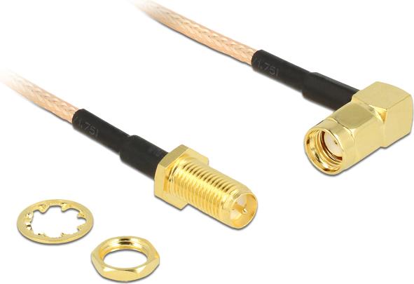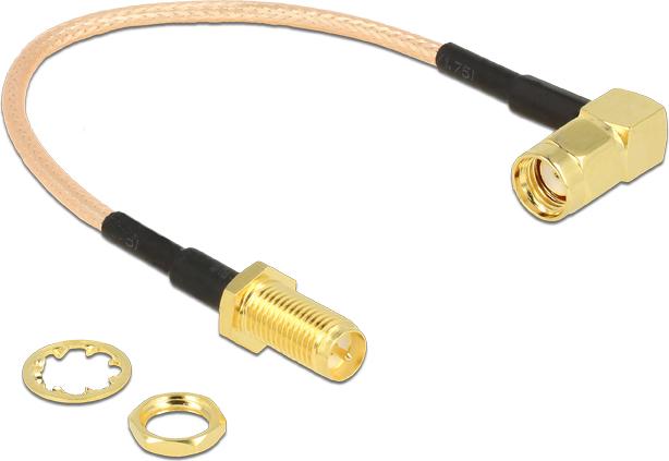 DeLOCK - Antennenkabel - RP-SMA (S) - bis - RP-SMA (B) - 16cm - Koax - (RG-316) - 1,2 dB - durchsichtig - 90 Grad rechtwinkliges Verbindungsstück (89431)