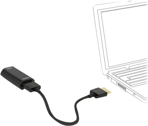 Mit diesem Adapter von Delock kann z. B. ein VGA Monitor an eine freie HDMI Schnittstelle des Systems angeschlossen werden.
