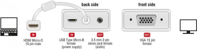 | Produktbeschreibung | DeLOCK Adapter HDMI Micro-D male > VGA female with Audio - VGA-Adapter - 17 cm |