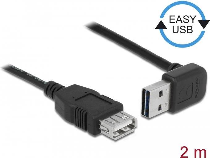 DeLOCK EASY-USB - USB-Verlängerungskabel - USB Typ A, 4-polig (M) - USB Typ A, 4-polig (W) - 2,0m (USB/USB2.0) - 90-Grad-Anschluss - Schwarz (83548)