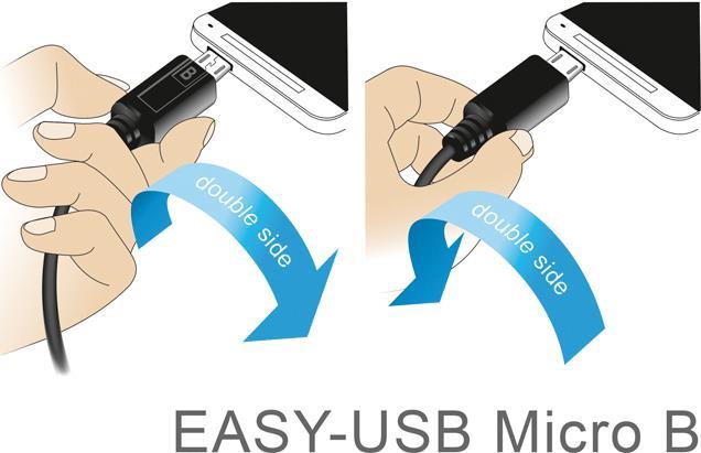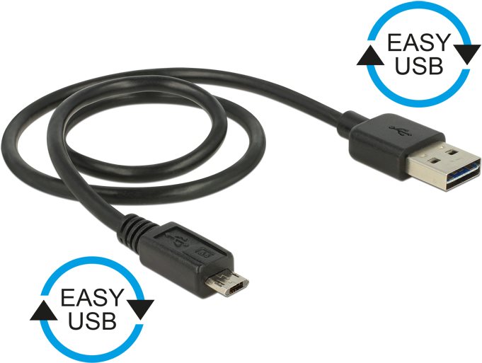 Dieses Kabel von Delock, mit EASY-USB Typ-A und EASY-USB Micro-B Stecker, kann jeweils in beide Richtungen in die entsprechende USB Buchse gesteckt werden. Somit können die Stecker beidseitig verwendet werden und erleichtern das Einstecken.