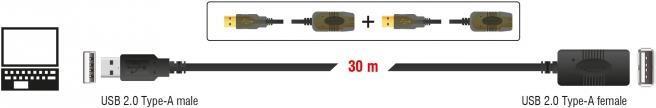 DeLOCK Extension cable USB2.0 - USB-Verlängerungskabel - USB Typ A, 4-polig (W) - USB Typ A, 4-polig (M) - 30,0m - aktives Kabel (Signalregenerierung) (83453)