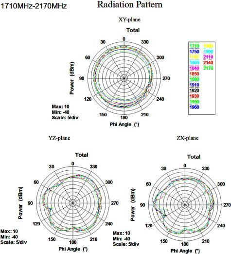 | Antennengewinn | 0-2 dBi bei 1710-2170 MHz 0-3 dBi bei 824-960 MHz |