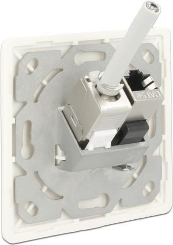 Wichtig: Die Anschlussdose kann nur mit sehr kompakten Modulen bis max. 14,7 mm Breite, z. B. dem Delock RJ45 Keystone Modul 86179 verwendet werden.
