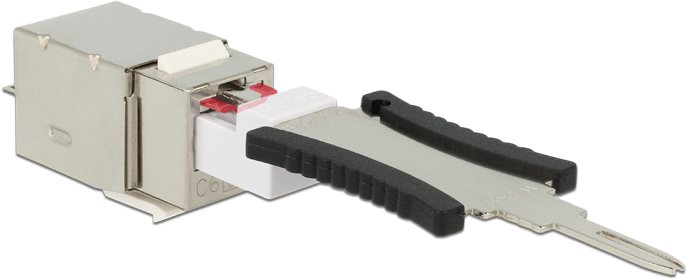 Dadurch kann der physikalische Zugang zum Netzwerk in sicherheitsrelevanten Bereichen, z. B. in öffentlichen Räumen oder in Rechenzentren, kontrolliert werden. Das System lässt sich mit handelsüblichen Patchkabeln verwenden; zum Lösen der Verriegelung wird ein separat erhältliches Werkzeug benötigt.