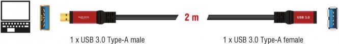 Delock Premium - USB-Verlängerungskabel - USB Typ A (M) zu USB Typ A (W) - USB3.0 - 2,0m - Schwarz (82753)