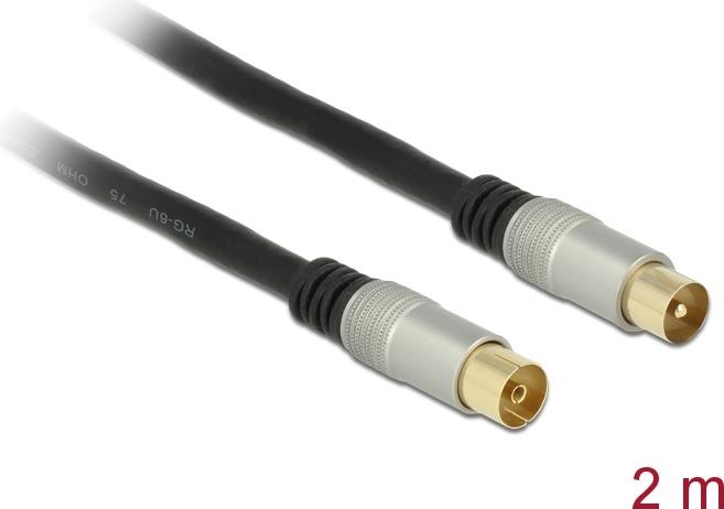 DeLOCK Premium - Antennenverlängerungskabel - HF - IEC-Anschluss (M) - IEC-Anschluss (W) - 2,0m - Vierfach abgeschirmtes Koaxialkabel - (RG-6/U) - 120 dB - Schwarz (88946)