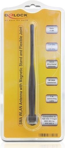 DeLOCK SMA WLAN Antenna with Magnetic Stand and Flexible Joint 4 dBi - Antenne - 802,11 b/g/n - 4 dBi - ungerichtet (88413)