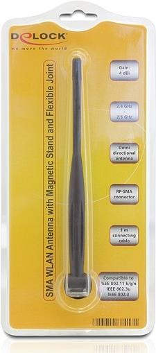 DeLOCK SMA WLAN Antenna with Magnetic Stand and Flexible Joint 4 dBi - Antenne |