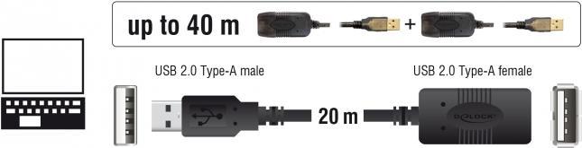 Dieses USB Kabel von Delock können Sie an einen aktiven USB Port anschließen und dient zur Verlängerung der USB Schnittstelle um 20 m. Durch Anstecken einer weiteren 20 m Verlängerung lässt sich das Kabel um bis zu 40 m erweitern. Der höhere Querschnitt der Stromleitung und Datenleitung gewährleistet auch bei dieser Länge eine zuverlässige Verbindung beim Anschluss Ihrer Geräte.