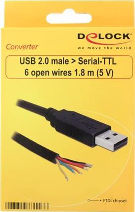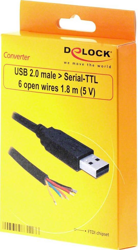 | Kabeleigenschaften | Chipsatz: FTDI 232RL Datenrate 300 Baud - 3 Megabaud Features: RemoteWakeup, EEPROM Kompatibel zu UHCI / OHCI / EHCI Kontroller Konverter: 5 V / 15 mA (VCC, GND) Leerlaufstrom: 70 uA LVTTL 5 V (Daten) / 4 mA oder HighLevel 12 mA Stoppbits: 1 oder 2 Temperaturbereich: -20°C bis +80°C |