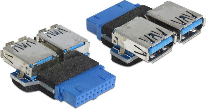 Delock Adapter USB 3.0 Pin Header Buchse > 2 x USB 3.0 Buchse - nebeneinander (65324)