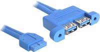 Delock USB3.0 Pin Header - USB-Kabel intern auf extern - 19-poliger USB3.0 Kopf (W) zu USB Typ A (W) - 45cm - Blau (82941)