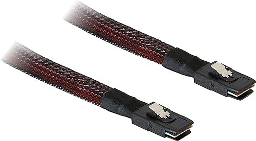 Mit diesem 1m langen mini SAS Kabel SFF 8087 können Sie z.B. eine Backplane mit mehreren Festplatten mit nur einem Kabel an einen Controller anschließen.