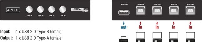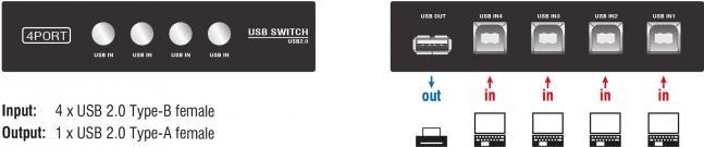 DeLock Switch USB2.0 4 port manual - USB-Umschalter für die gemeinsame Nutzung von Peripheriegeräten - 4 x USB2.0 - Desktop (87634)