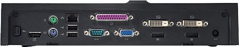 Maximal großer Arbeitsbereich bei Nutzung des Dell Advanced Port Replicator. Der Replicator bietet eine praktische Kabelführung, und Sie müssen die Peripheriegeräte nicht mehr bei jeder Rückkehr an Ihren Schreibtisch neu anschließen. Ein einziger Anschluss bietet Zugriff auf mehrere Erweiterungssteckplätze, darunter: VGA, DVI, S-Video, Parallel, Seriell, PS/2 (zwei), Kopfhörer, S/PDIF, USB 2.0, RJ-45 und D/Bay-Anschluss für externe Wechselmodule der D-Familie. Zusätzlich erhalten Sie dank der Unterstützung von zwei Flachbildschirmen mehr Flexibilität und eine erweiterte Ansicht.