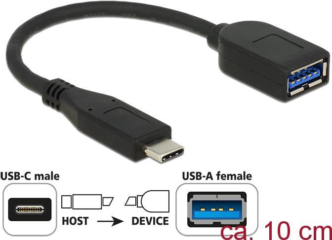 Delock Adapter SuperSpeed USB 10 Gbps (USB 3.1 Gen 2) USB Type-C Stecker > USB Typ-A Buchse 10 cm koaxial schwarz Premium.