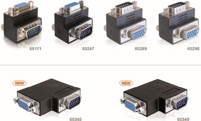 Mit diesem VGA Adapter von Delock können Sie den Stecker Ihres VGA Gerätes um 90° abwinkeln. Somit können Sie Ihr VGA Kabel problemlos anschließen, falls der bereits vorhandene VGA Stecker nur schwer zugänglich ist.