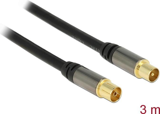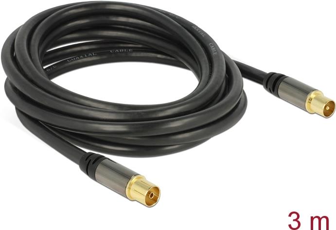 Delock Antennenkabel IEC Stecker > IEC Buchse RG-6/U 3 m schwarz (88924)