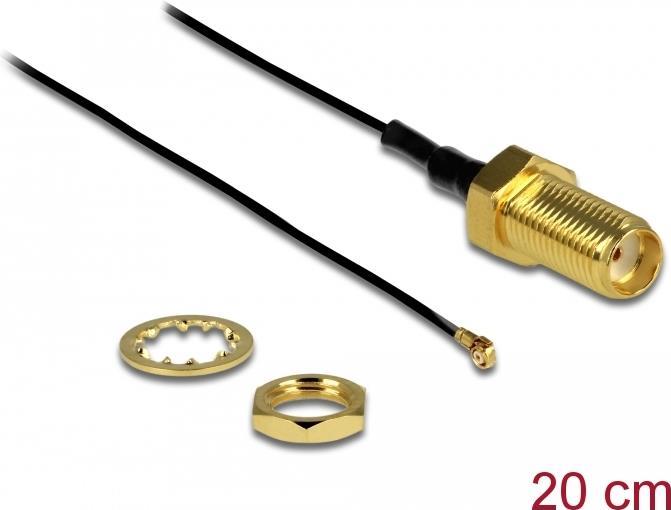 Delock Antennenkabel SMA Buchse zum Einbau zu MHF® 4 Stecker 0.81 20 cm Gewindelänge 10 mm (88814)