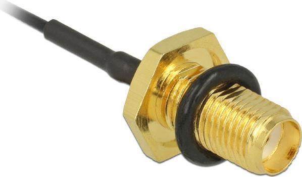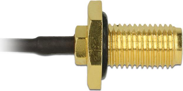Dieses Delock Antennenkabel dient der Zuführung eines Antennensignals in das Innere eines Gerätes. Durch den losen Dichtring auf der Grundplatte an der SMA Einbaubuchse wird ein spritzwassergeschützer Anschluß am Gerät erreicht.