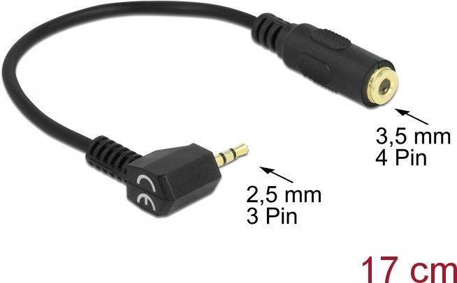DeLOCK - Audio-Adapter - Stereostecker für Sub-Mini Telefon 2,5 mm (M) - bis - Mini-Phone 3,5 mm, 4-polig (W) - 17cm - Schwarz - 90° links abgewinkelter Anschluss (65674)