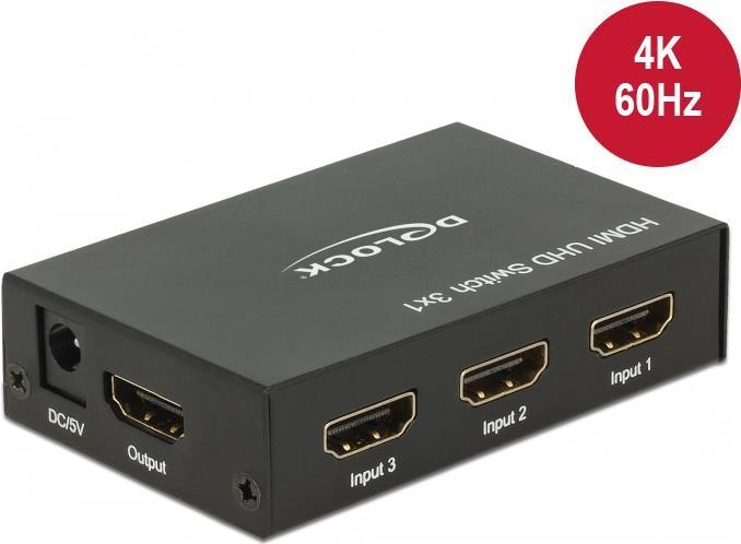 Delock HDMI UHD Switch 3 x HDMI in > 1 x HDMI out 4K (18683)