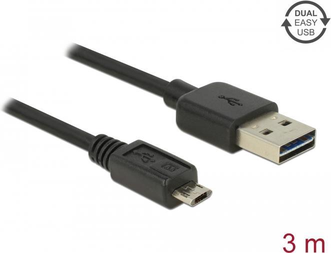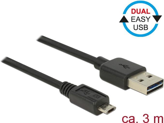 DeLOCK - USB-Kabel - USB (M) bis Micro-USB Type B (M) - USB2.0 - 3,0m - umkehrbare Stecker - Schwarz (83851)