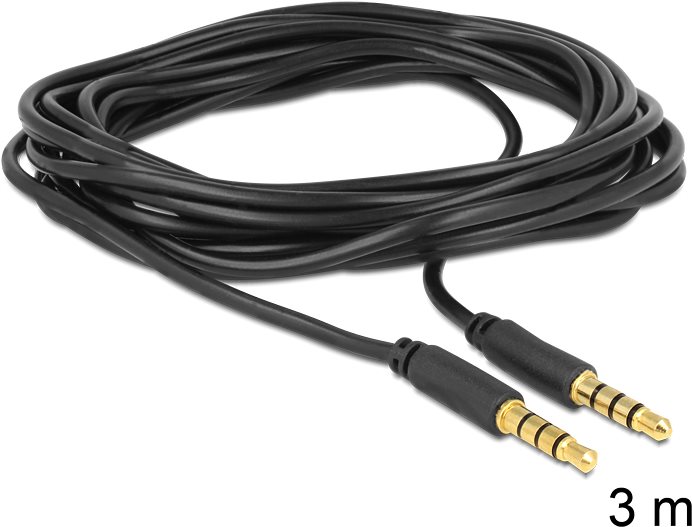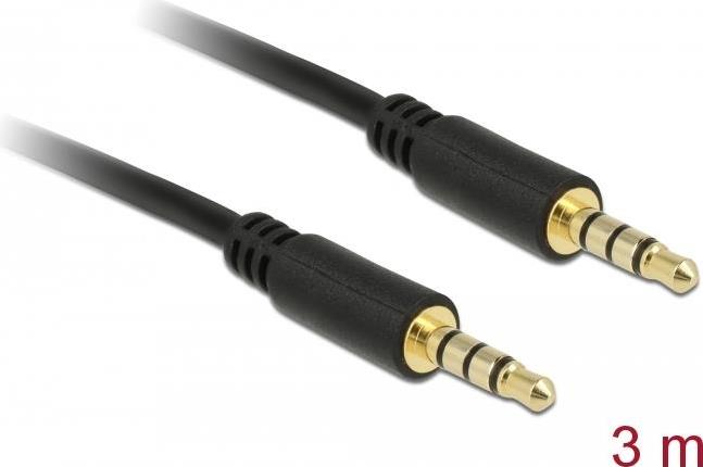 DeLOCK - Audiokabel - 28 AWG - Mini-Phone 3,5 mm, 4-polig (M) - Mini-Phone 3,5 mm, 4-polig (M) - 3,0m - abgeschirmt - Schwarz (83437)