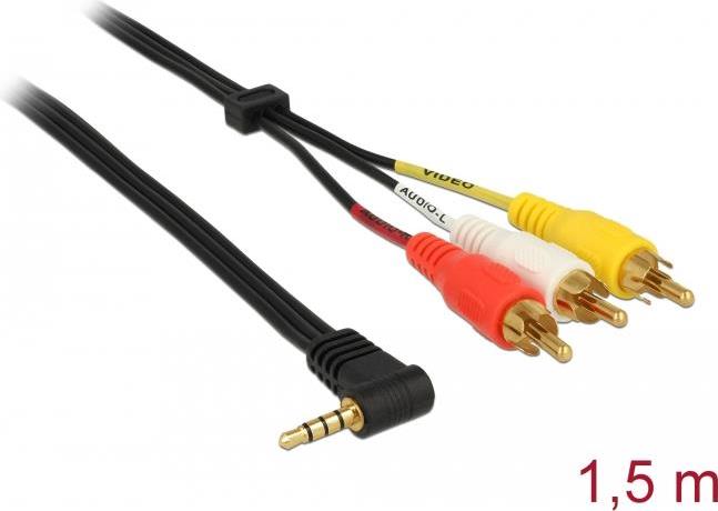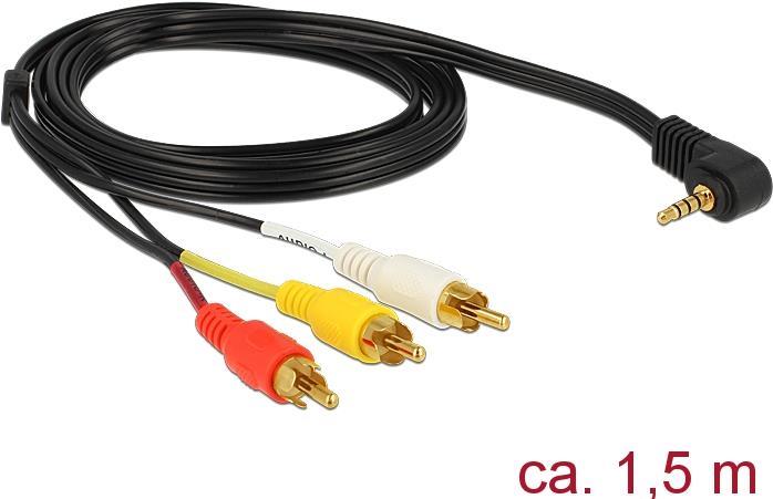 DeLOCK - Video- / Audiokabel - Mini-Phone 3,5 mm, 4-polig (M) - RCA Phono x 3 (M) - 1,5m - Schwarz - Verbindungsstück im 90°-Winkel (84504)