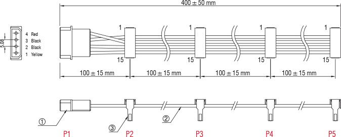 Dieses Stromkabel dient der Stromversorgung von 4 SATA Geräten über einen Molex 4 Pin Anschluss des Netzteils.
