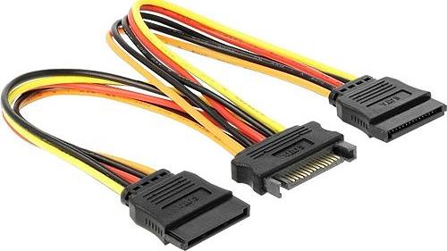 Dieses Kabel dient der Stromversorgung von zwei SATA Geräten über einen freien SATA 15 Pin Stromanschluss des Netzteils.