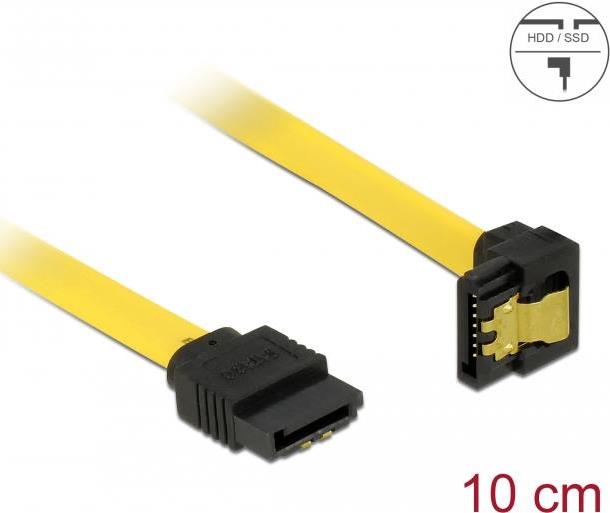 Delock Cable SATA - SATA-Kabel - Serial ATA 150/300/600 - SATA (W) zu SATA (W) - 10cm - nach unten gewinkelter Stecker, eingerastet, gerader Stecker - Gelb (82798)