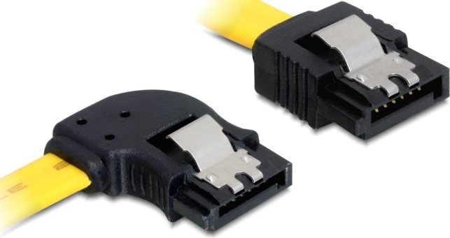 Dieses SATA Kabel von Delock entspricht dem neuesten Standard und verfügt über eine Datentransferrate von bis zu 6 Gb/s. Es dient zum internen Anschluss verschiedener SATA 6 Gb/s Geräte, wie z.B. Festplatten, Controller Karten oder auch Flash Speicher. Beim Anschließen einer Festplatte wird das SATA Kabel nach links weggeführt. Zudem ist die SATA 6 Gb/s Schnittstelle abwärtskompatibel zu den vorherigen SATA Versionen, wobei hier nur die jeweilige Transferrate erreicht werden kann. Zusätzliches Einrasten beim Anschließen der Kabel wird durch Metall Clips am SATA Stecker ermöglicht.