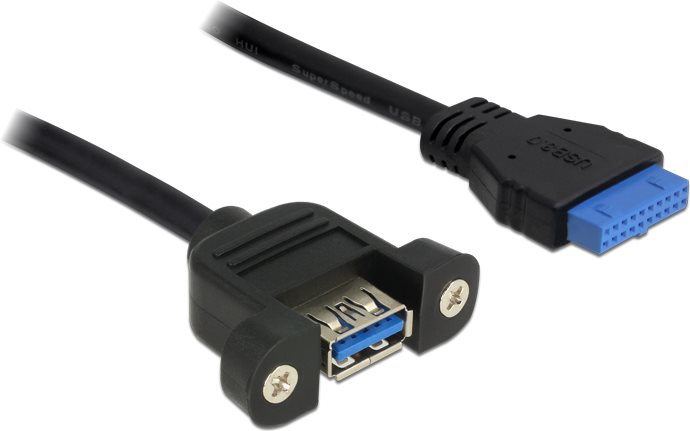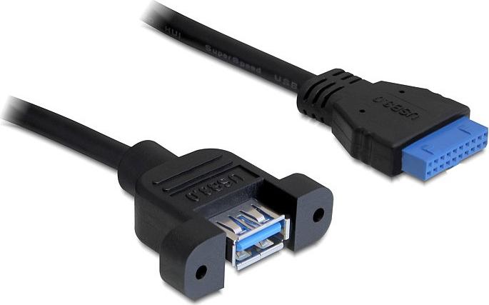 DeLOCK USB3.0 Pin Header - USB-Kabel intern auf extern - 9-polig USB Typ A (W) - 19-polige USB3.0-Stiftleiste (W) - 50cm (USB3.0) - Schwarz (83118)