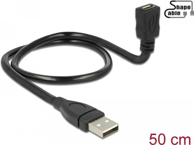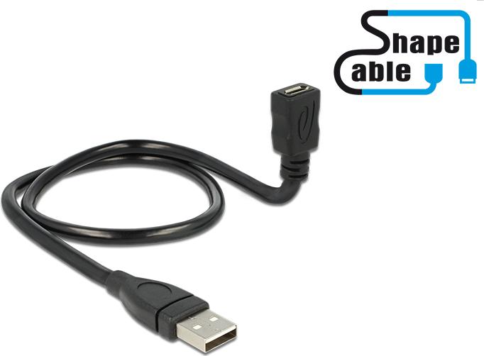 DeLOCK ShapeCable - USB-Verlängerungskabel - 5-polig Micro-USB Typ B (W) bis USB (M) - 50cm - Schwarz (83922)