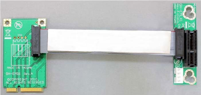 Mit dieser Riser Karte können Sie Ihre PCI Express x1 Karte an den Mini PCI Express Slot Ihres Mainboards anschließen. Das flexible Kabel ermöglicht eine platzsparende Installation in Ihrem Computergehäuse.