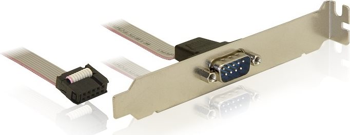 Dieses Slotblech von Delock dient zum Einbau in einen Standard PC Slot und ermöglicht die Nutzung eines internen COM-Port. Dieser kann nach außen geführt werden, um ein externes serielles Gerät anzuschließen.