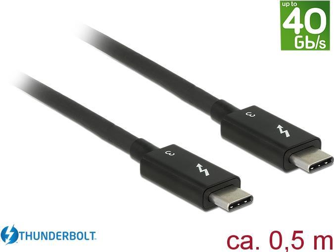 Delock - Thunderbolt-Kabel - 24 pin USB-C (M) zu 24 pin USB-C (M) - USB 3.1 Gen 2 / Thunderbolt 3 / DisplayPort 1.2a - 20 V - 5 A - 50 cm - 4K Unterstützung - Schwarz (84844)