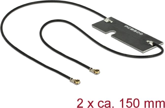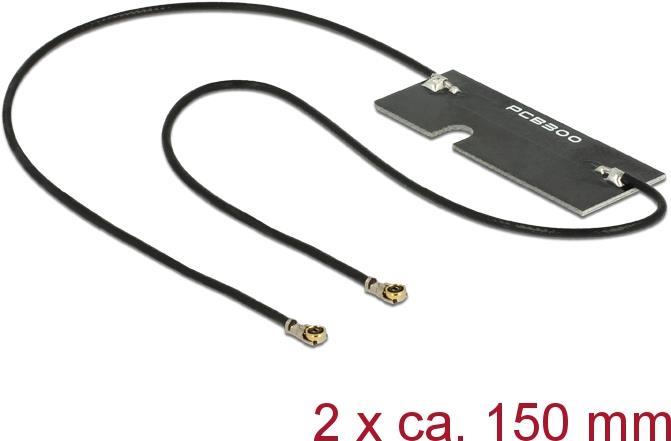 Diese Doppel WLAN Antenne von Delock dient der Integration in Geräte mit MHF IV / HSC MXHP32 kompatiblem Anschluß. Es handelt sich um zwei getrennte Antennen mit gemeinsamen Massepunkt.