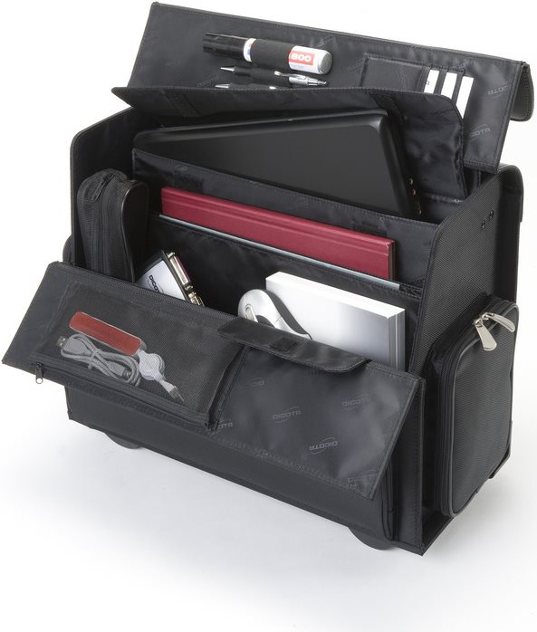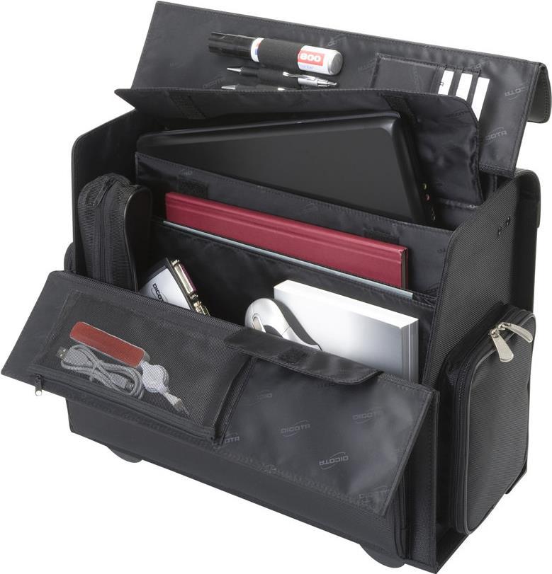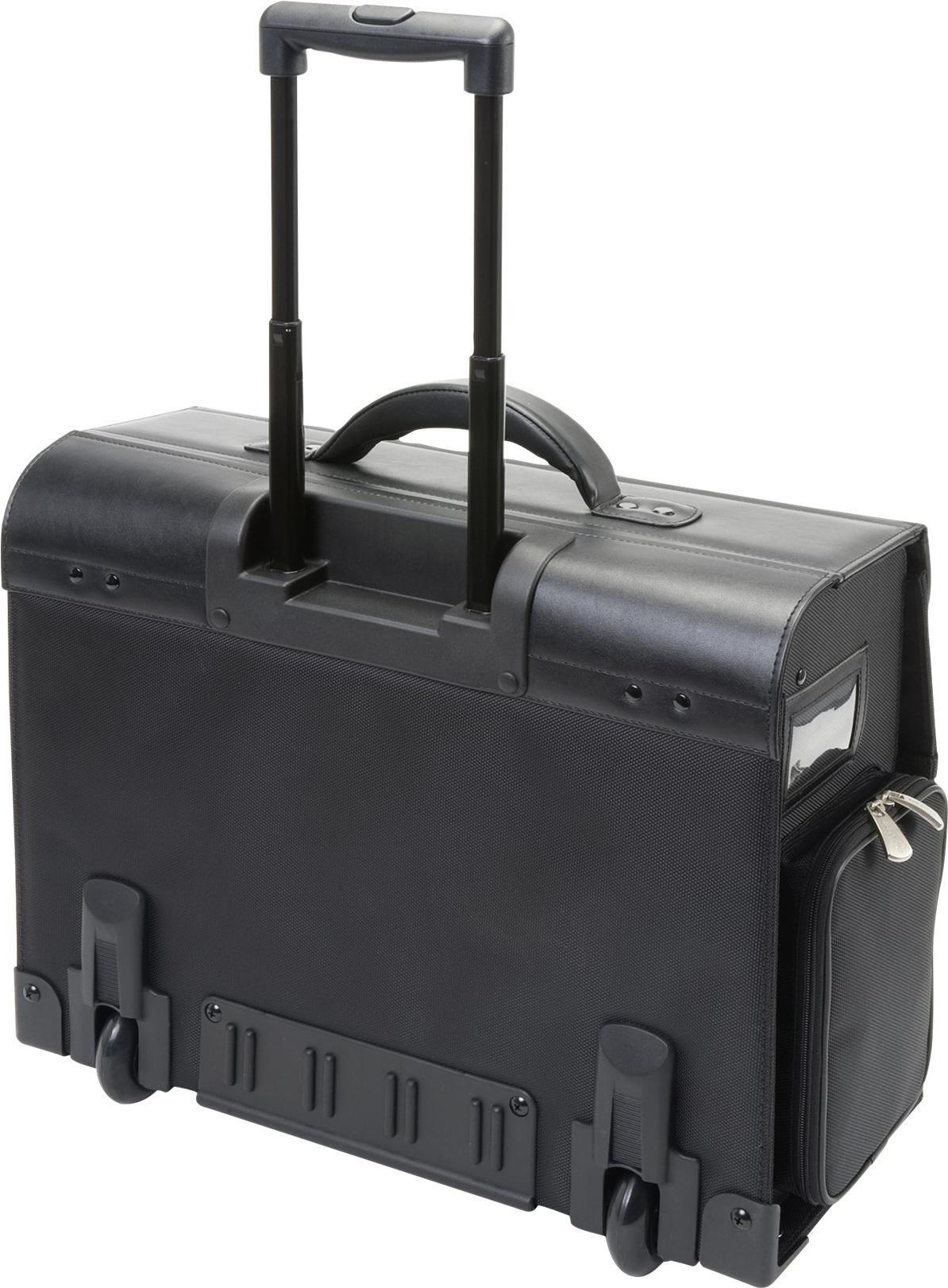Das ComfortCase ist Ihr perfekter Begleiter für unterwegs. Das mobile Büro bietet neben viel Stauraum für Dokumente, Ordner, etc. auch genügend Platz für Notebooks bis zu 17,1" Größe. Das gepolsterte Notebookfach garantiert einen sicheren Transport des Notebooks. Während man im zweigeteilten Dokumentenfach problemlos Unterlagen oder Dokumente verstauen kann, bietet das ComfortCase darüber hinaus noch zusätzlichen Platz für den Transport von zwei nebeneinander aufgestellten DIN A4-Ordnern. Am Kofferdeckel und an der Innenwand des Koffers, sind Halterungen für Stifte, Textmarker und Visitenkarten vorgesehen. Eine Netztasche mit Reißverschluss bietet weiteren Stauraum für sonstiges Zubehör. Auch der Transport von CDs kann problemlos in einer extra dafür vorgesehenen Tasche getätigt werden. Die seitlichen Taschen bieten neben der innen liegenden Halterung für ein Handy zusätzlichen Stauraum für weiteres Zubehör. Der gepolsterte Tragegriff sorgt für ei-nen komfortablen Transport. Die hochwertigen abschließbaren Kofferverschlüsse, sowie der Material-Mix aus Koskin und Nylon, sorgen für den optischen edlen Look. Das integrierte Trolley-System sorgt für einen besonders bequemen Transport Ihres Mobilen Büros.