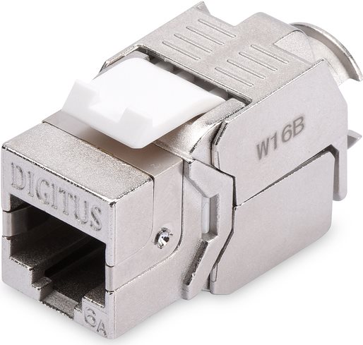 Das geschirmte CAT 6A Keystone Modul-Set DN-93615-24 von DIGITUS® überzeugt durch zukunftsorientierte Standards und High-End Qualität für Ihr Netzwerk. Die kompakte Bauform erlaubt eine Reiheninstallation von 24 Stück in 483 mm (19) 1HE Panel. Die werkzeugfreie Installation erfolgt über LSA-Leisten, farbcodiert nach EIA/TIA 568 A&B. Durch seine kompakte Bauform passt das Modul außerdem in designkompatible modulare Anschlussdosen.