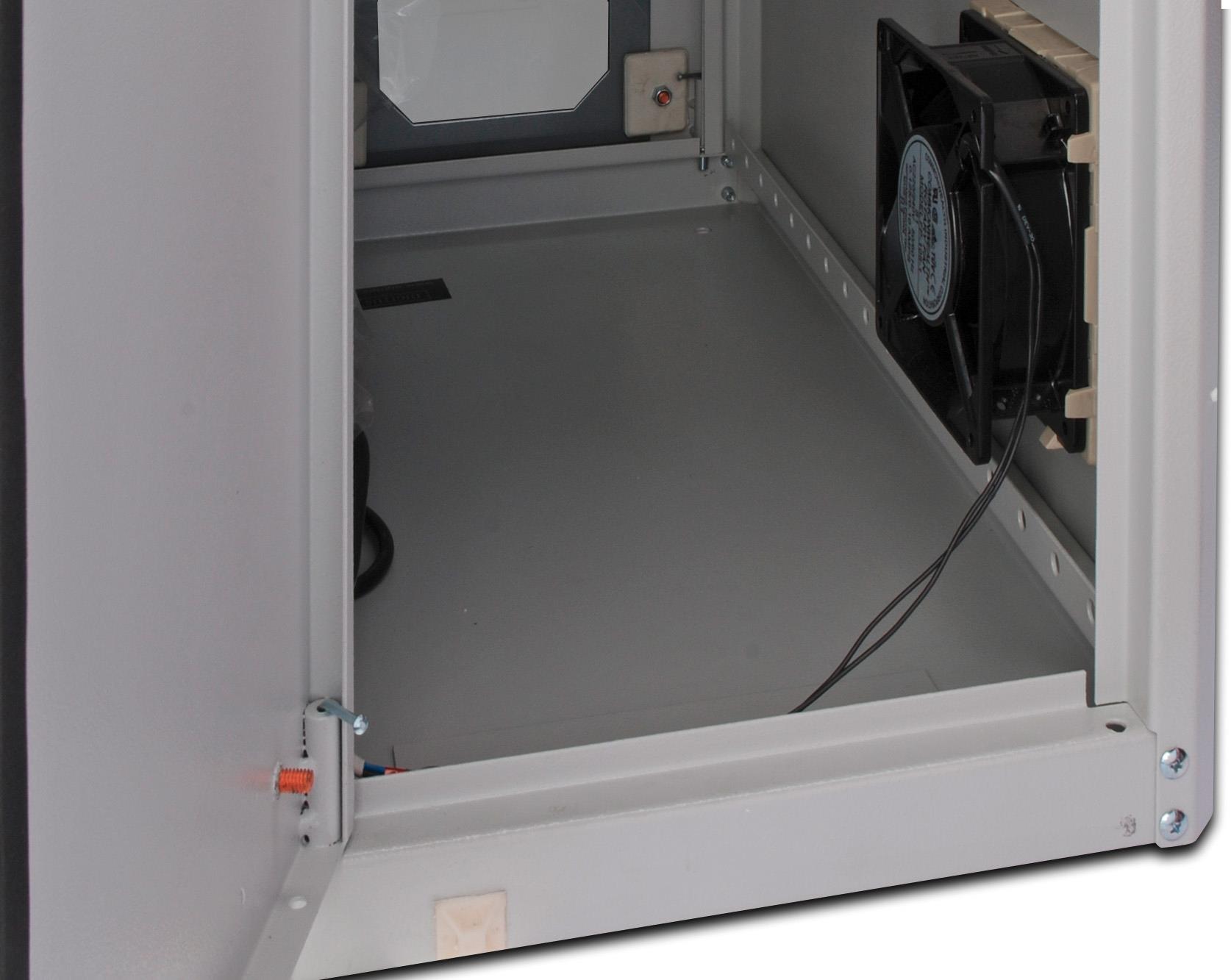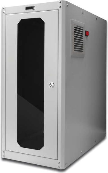 Das Computergehäuse von DIGITUS® zeichnet sich durch die robuste Konstruktion aus 1,5 mm starkem Stahlblech aus, welches in puncto Wertigkeit keine Wünsche offen lässt. Der eingebaute Filterlüfter sorgt für ausreichend Luftaustausch und Wärmeableitung. Dank der verbauten Filter bleibt Staub und Schmutz außen vor, dies schont die elektronischen Komponenten innerhalb des Gehäuses. Die vordere und hintere Tür lässt sich jeweils verschließen. Die Anschlusskabel lassen sich sowohl durch eine Öffnung im Boden als auch im Dach des Gehäuses einführen, die integrierte Moosgummidichtung erhöht dabei zusätzlich den Schutz vor Staub und Fremdkörpern. Die stabilen Nivellierfüße sorgen für einen sicheren Stand und eine optimale Anpassung an den Boden. Das Gehäuse ist optimal geeignet für Fertigungsstrecken, Warenhäuser, Laboratorien oder ähnliche Anwendungsfelder.