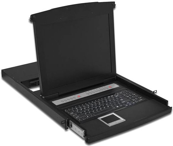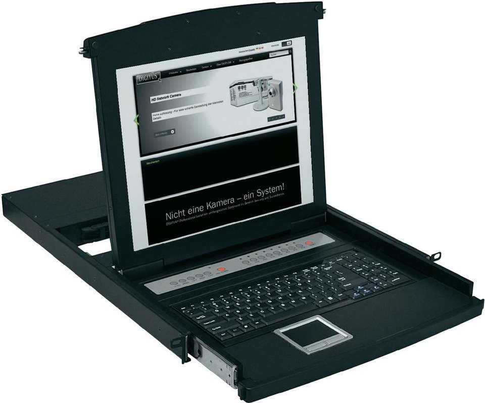 Die DIGITUS TFT Konsolen mit integriertem KVM Umschalter sind eine platzsparende und funktionelle Lösung für einen komfortablen Anschluss mehrerer PCs, oder Server in einer Netzwerkschrank-Umgebung. Sie vereinen vier Geräte in Einem und benötigen nur 1HE in einem Netzwerkschrank.Beschreibung