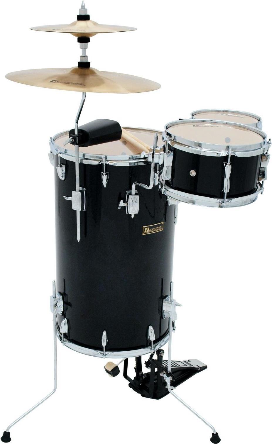 Dimavery Schlagzeug-Set CDS Cocktail Schwarz inkl. Fußmaschine, inkl. Becken